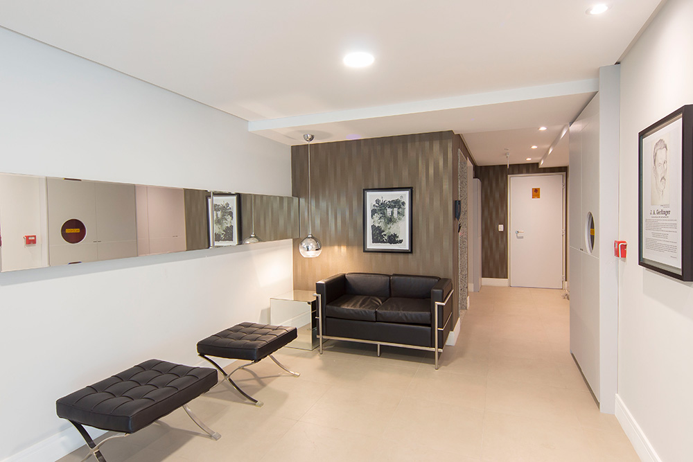 • Hall de entrada decorado com teto rebaixado em gesso e iluminação personalizada;