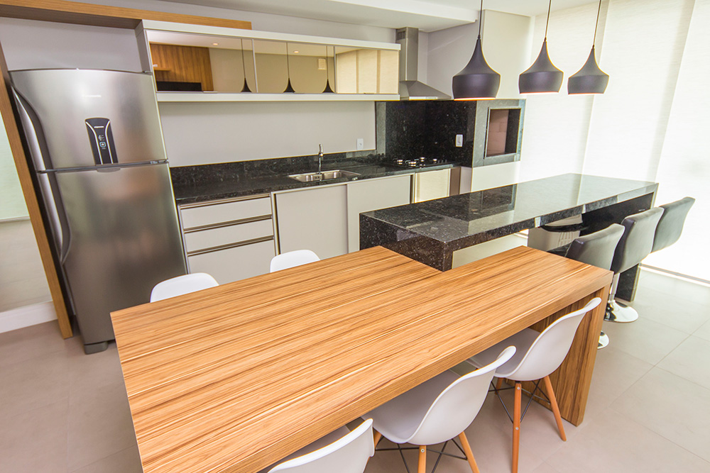 • Porcelanato polido nas áreas sociais e banheiros e piso laminado nos quartos.