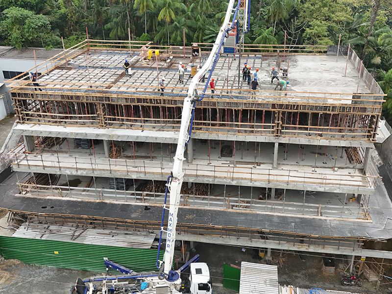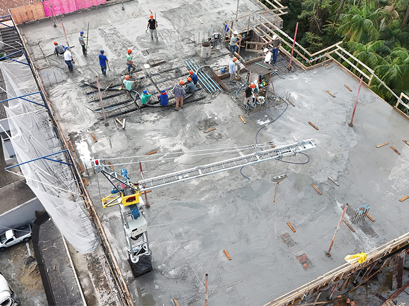 • Acabamentos externos em textura acrílica e concreto aparente;