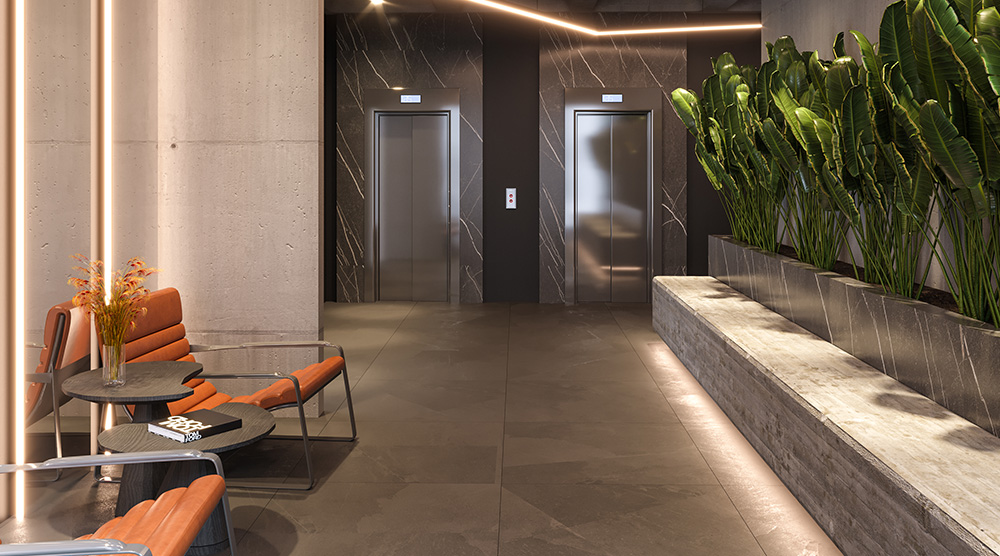 De acordo com a lei nº 4591/64, informamos que as ilustrações têm caráter exclusivamente promocional. Os acabamentos serão de conformidade com o memorial descritivo, que fará parte integrante do contrato. Perspectiva artística da fachada. As tonalidades das cores apresentadas podem sofrer alterações em relação à pintura real do edifício.