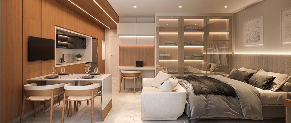 APTOS 01 DORMITÓRIO Até 41,03m² de Área Privativa Com 01 Vaga de Garagem