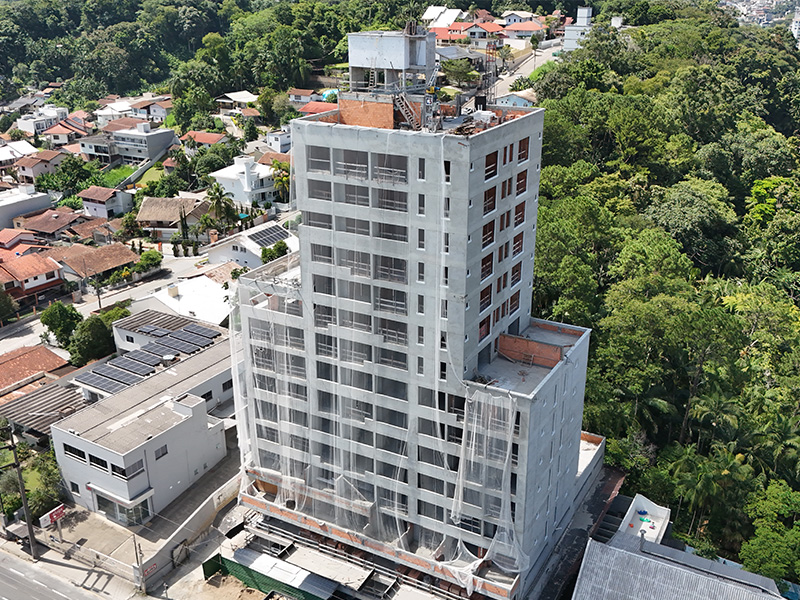 • Acabamentos externos em textura acrílica e concreto aparente;