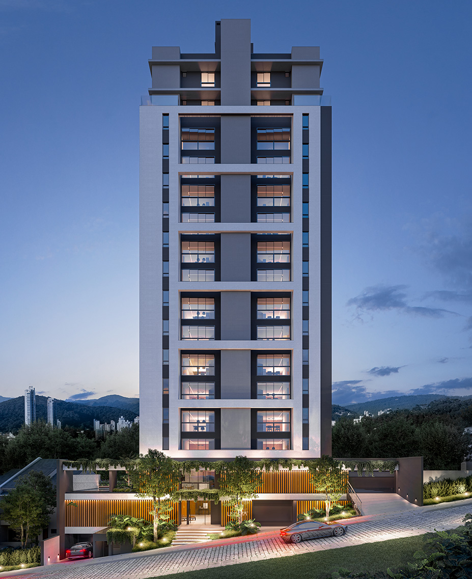 De acordo com a lei nº 4591/64, informamos que as ilustrações têm caráter exclusivamente promocional. Os acabamentos serão de conformidade com o memorial descritivo, que fará parte integrante do contrato. Perspectiva artística da fachada. As tonalidades das cores apresentadas podem sofrer alterações em relação à pintura real do edifício.