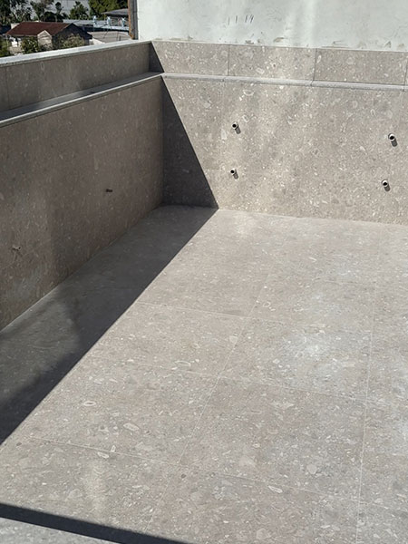 • Acabamento externo revestido em bricks cor cinza e texturas acrílicas;