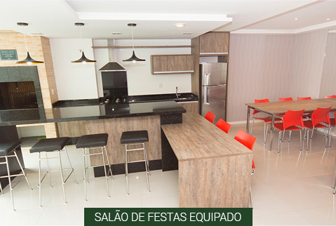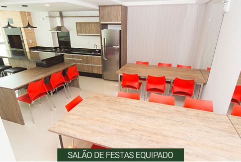 - 02 blocos integrados no pavimento de garagem, com hall de entrada e salão de festas;